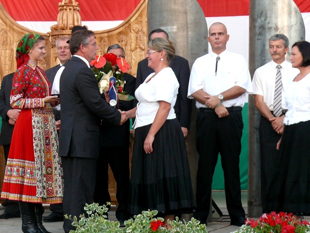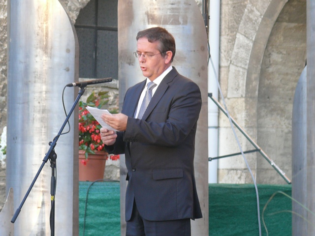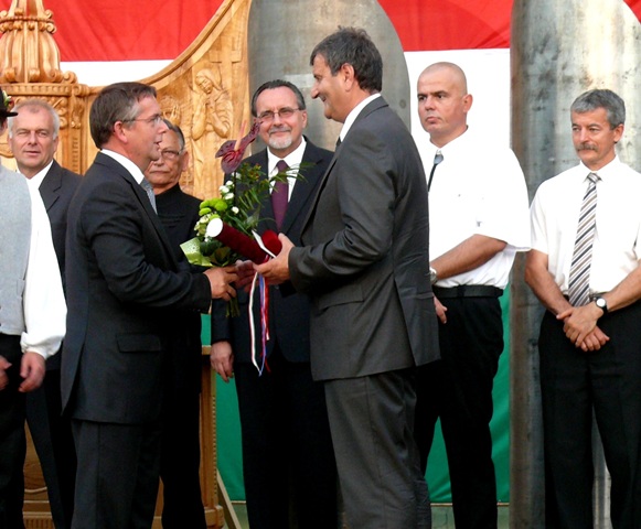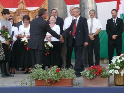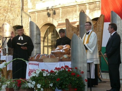 A misét ökumenikus kenyéráldás követte, melynek során dr. Szabó Előd református, Frankó Mátyás evangélikus lelkipásztor és Szalai Gábor kérte Isten áldását az új kenyérre, melyet Michl József polgármester szegett meg. A kenyérből minden jelenlevőnek jutott. Majd Michl József mondta el ünnepi beszédét, s hangsúlyozta: