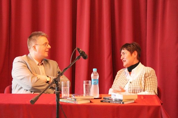 Várady Eszter, az esztergomi Helischer József Könyvtár igazgatója vendégeskedett nálunk. Kérdezője, Bánhidy Vajk tanár úr őszinte faggatózással vezette át élete eseményein. Kedves öniróniával, lefegyverző őszinteséggel és egyszerűen, baráti közvetlenséggel beszélgettek, bevonva a riposztokat élvező közönséget is. Az idegen is úgy érezhette, hogy régi ismerősével találkozott újra. Annak ellenére, hogy ők ketten már többször szerepeltek együtt ilyen felállásban, a tanár úr mégis tudott olyan apróságokat, érdekességeket kérdezni, melyek az ő számára is újdonságot jelentettek az írónő életében.