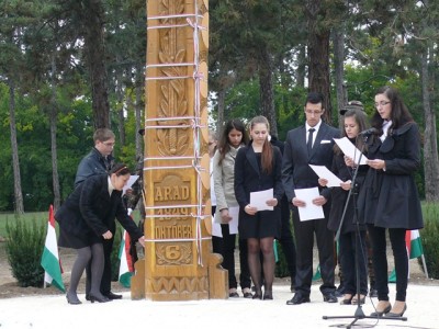 A tizenhárom vértanú arcképének felfedésekor mindegyikükről egy-egy mondat hangzott el diákok tolmácsolásában, majd a történelmi egyházak képviselői megáldották az emlékoszlopot. Dr. Mákus Mihály református püspök, Frankó Mátyás evangélikus lelkész és Szalai Gábor katolikus plébános áldása után az önkormányzat és a civil szervezetek, iskolák koszorúkat helyeztek el az oszlop előtt. Az ünnepség szentmisével fejeződött be a kapucinus templomban.