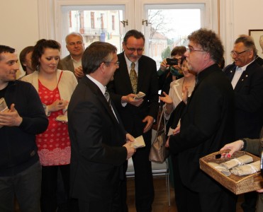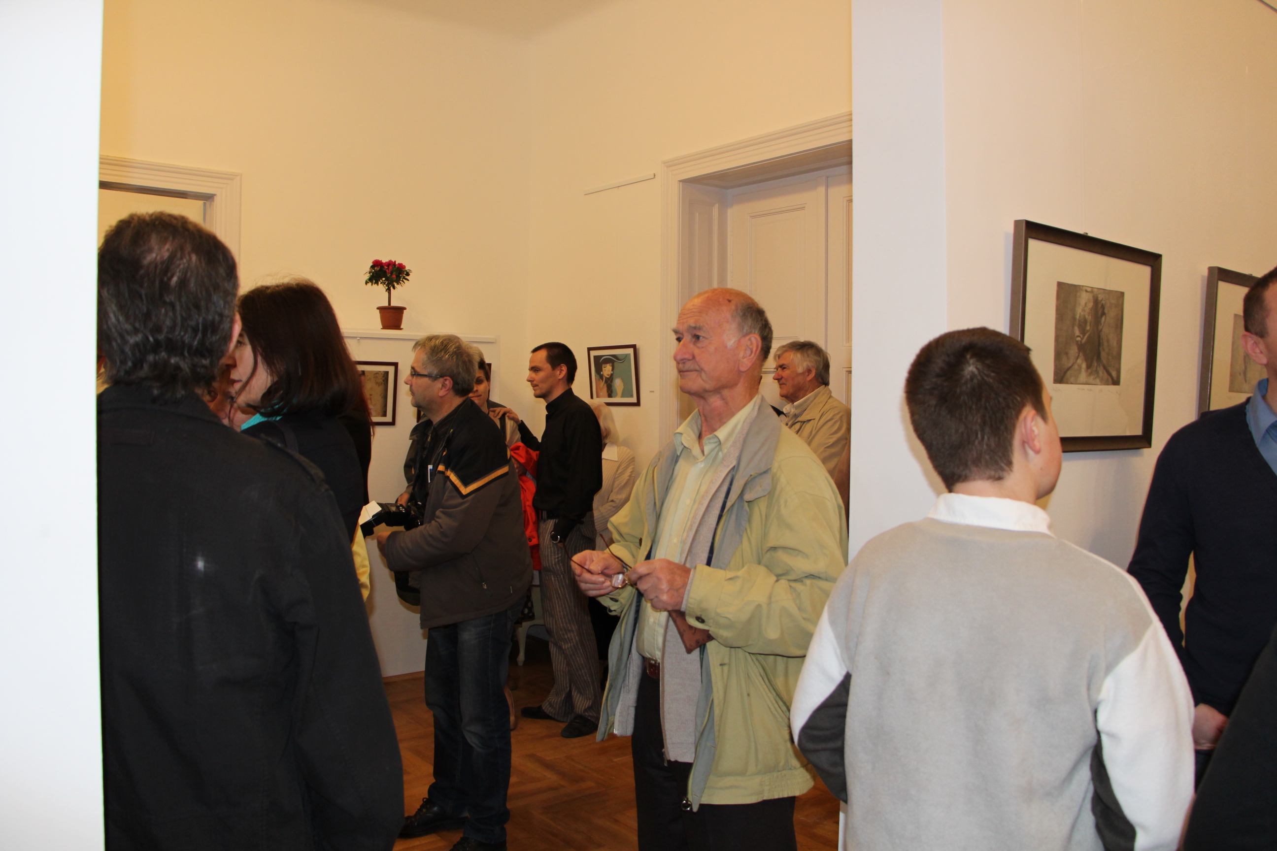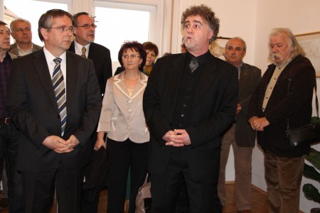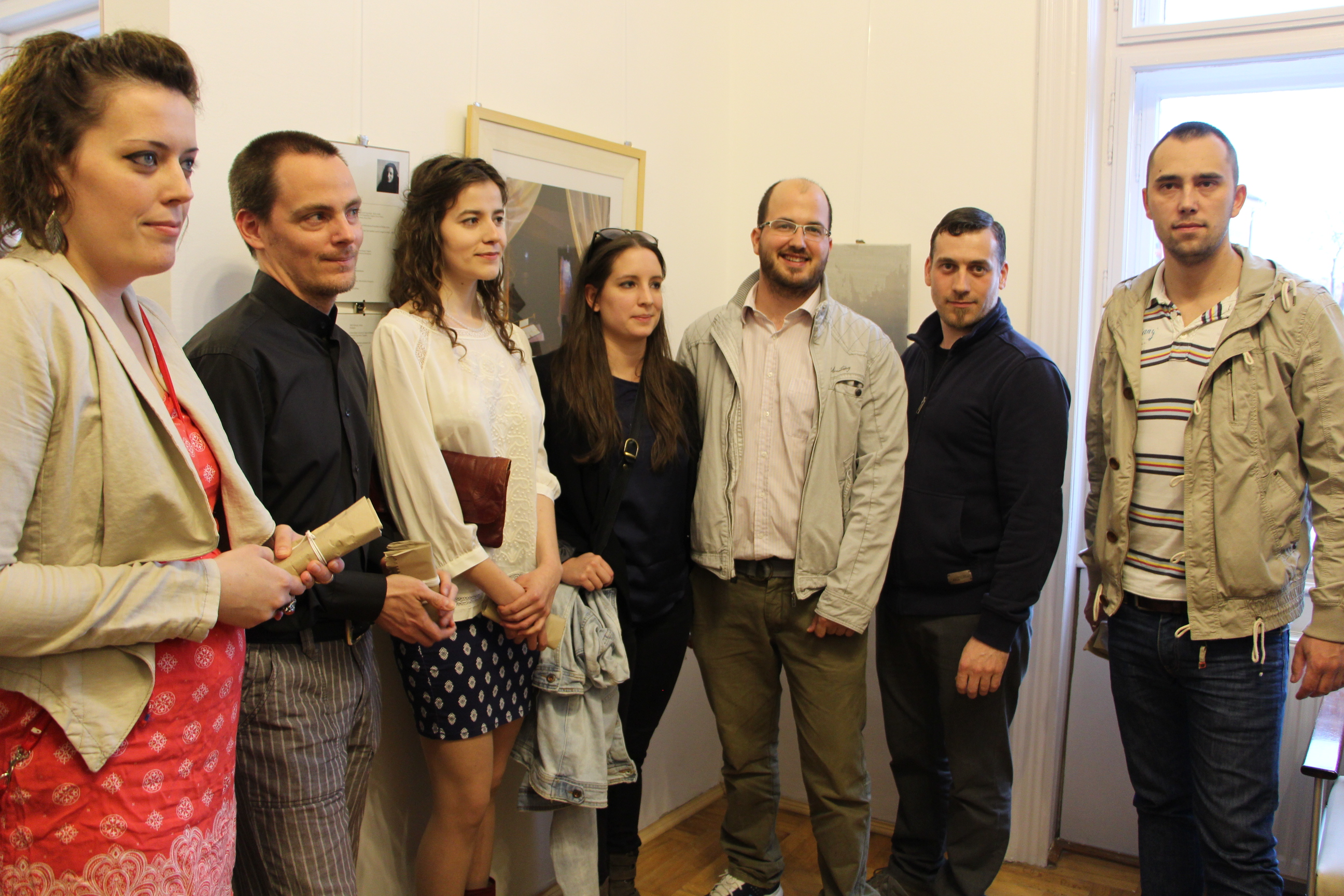 A fiatal művészek munkáit Lévai Ádám ajánlotta a közönség figyelmébe. Hajdú Zsófi, Matyus Dóri, Michl Balázs, Mórocz István, Sipos Zoltán, Sztruhár Zsuzsa, Varga Benedek alkotásait Hét próbakő címmel foglalták össze, s mind a hét művész egy aprócska próbakő-csomagot kapott Lévai Ádámtól. A tulajdonosok nevében Gútay János művész-tanár is köszönetet mondott mindazoknak, akik hozzájárultak ahhoz, hogy ismét megnyithassák a galériát.