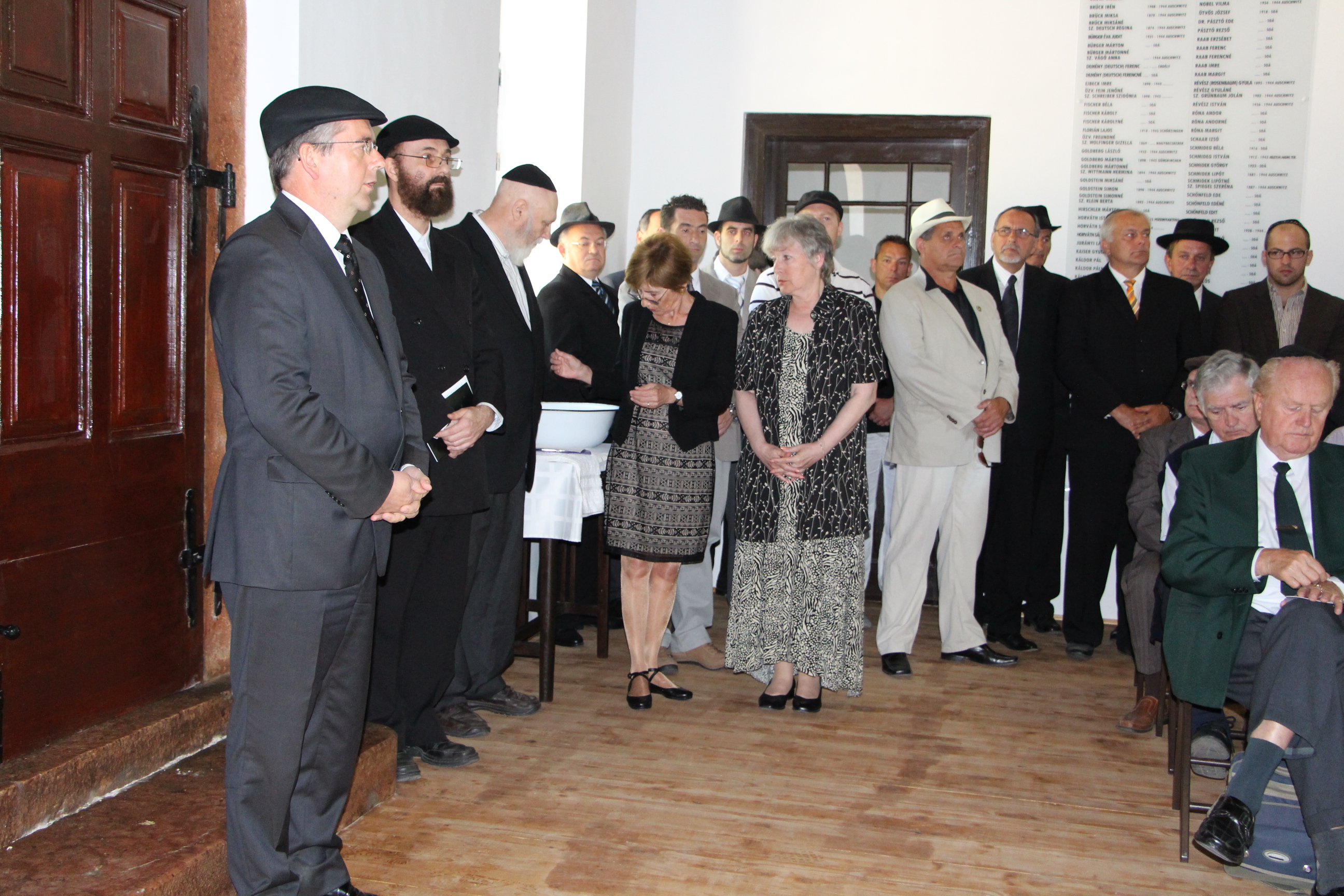 Petrovics Péter rabbi tartott istentiszteletet, s részletesen szólt a vészkorszak tatai eseményeiről. 1944 májusának utolsó napjaiban gyűjtötték össze Tatán a zsidókat, s ideiglenesen a gettóba vitték őket. Ez a major épületében volt, a Táncsics Mihály utcában, ahol egy marhaistálló szolgált szálláshelyül. Bútoraikat és ingóságaikat a zsinagógába szállították, személyes tárgyaikat pedig a csendőrök vették el a zsidóktól. Innen pedig a végzet felé robogó vagonba hajtották őket. A jelen levők a mártírfal előtt mécseseket gyújtottak, majd a zsidó hagyományoknak megfelelően kavicsokkal rótták le tiszteletüket a temetőben kialakított emlékhely előtt.