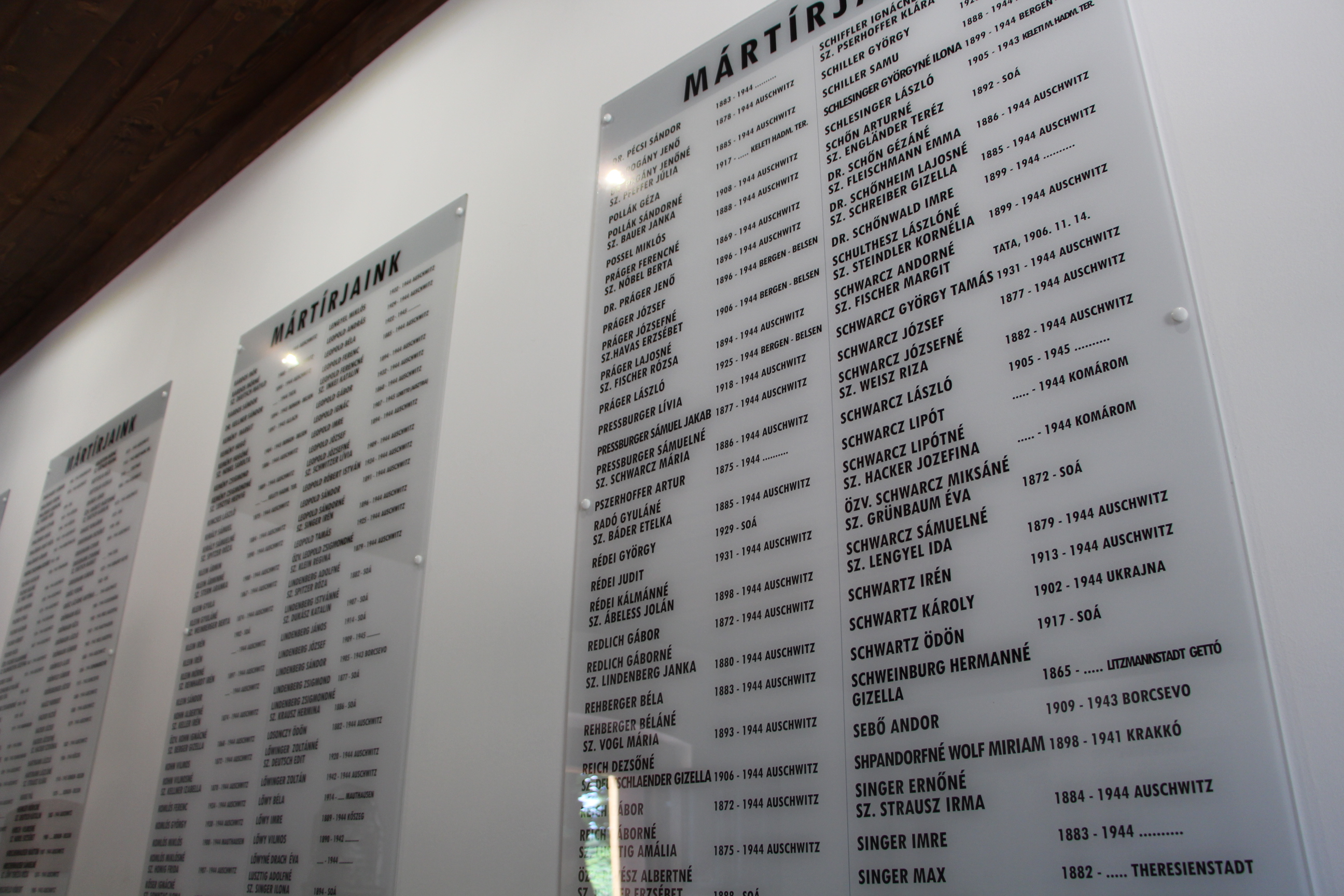 - Évtizedes adósság egy részét törlesztettük ezzel, hogy a helyi zsidó áldozatokat számba vettük. Ezer név került a mártírfalra, akiket 1944 június 6-án szállítottak vagonokban csendőri biztosítás mellett a tatai gettóból a monostori erődbe. A kutatás során a túlélők és leszármazottaik közlését is felhasználtuk, ám így sem teljes a lista – emelte ki Kerti Katalin, s köszönetet mondott mindazoknak, akik a megemlékezés programjait támogatták így Michl József polgármesternek, Kaszál József és Borsó Tibor bizottsági elnököknek, s a Mazsihisznek, a temető felújítását szívvel-lélekkel végző Jungvirthné Bús Erzsébetnek és kollégáinak, valamint a magánadakozóknak.