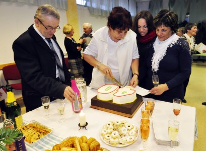 Az ünnepség megörökítésében szorgalmasan kattintgatta fényképező gépét a Sprint Futókőr elnöke Lamatsch János is, aki szintén sokat köszönhet a FUK önkénteseinek a sprintes rendezvényeken! Lentulay Mária jelenlegi elnök örömmel vette át a gyönyörű virágcsokrot Galbicska Pétertől és Vörös Vincétől. Szentessy Lászlóné az akkori Tatai Megyei Művelődési Központ igazgatója is felidézte a 40 éve alakult Klub kezdeti éveit és ismételten megköszönte a sok sok segítséget, a rendkívüli aktivitást.
