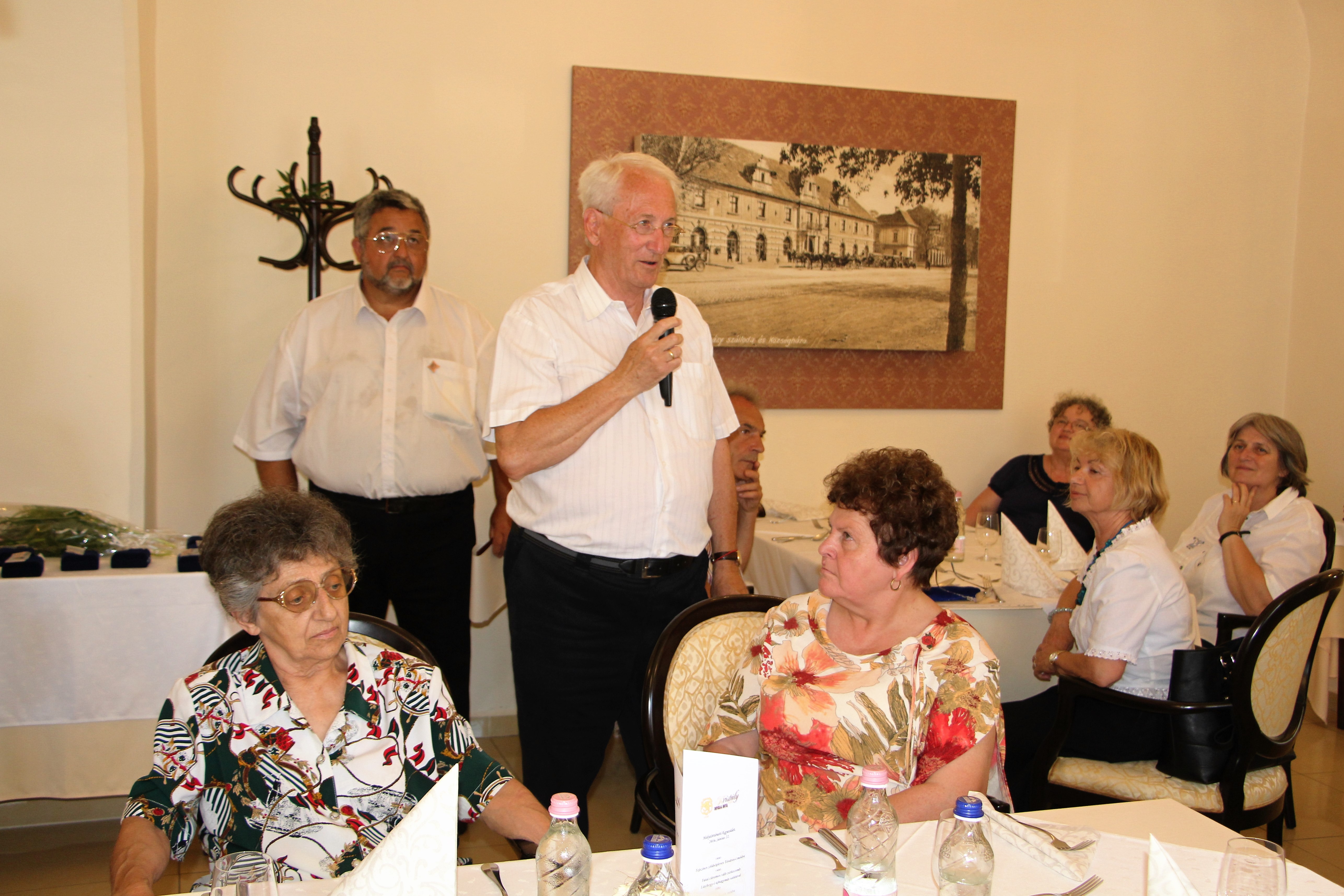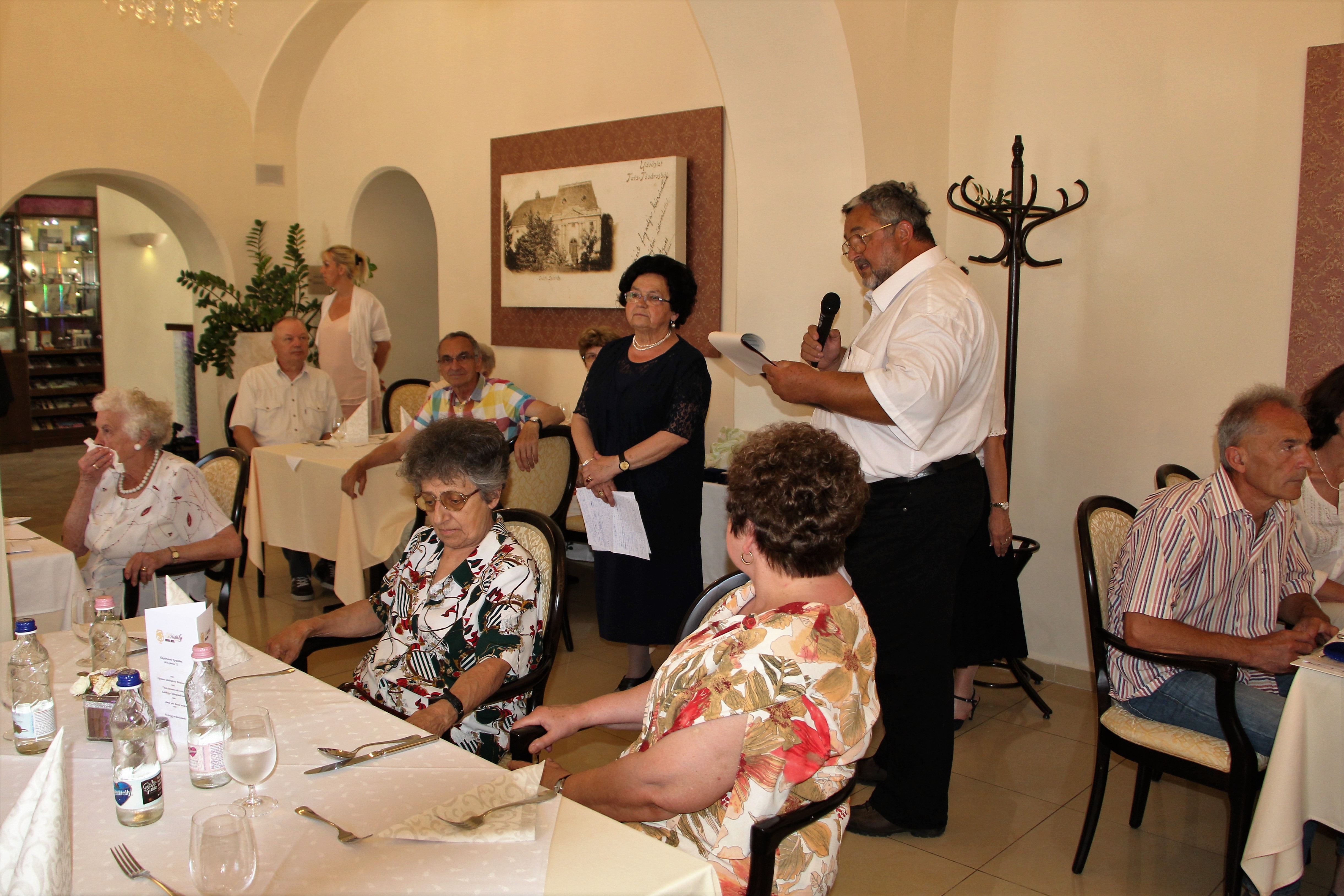 Az emlékszalagok elhelyezését követően a Kristály Imperial Hotel éttermében tartott ünnepi közgyűlésen először a házigazda Gasztro - Kristály Zrt. vezérigazgatója, Beiermeiszter György, majd dr. Kis Tiborné a Tatai Helytörténeti Egyesület elnöke köszöntötte a vendégeket. dr. Kis Tiborné emlékeztetett az ősök iránti tiszteletre és arra, hogy a hagyományok megőrzése kötelességünk, mert múltunkat a jövő érdekében fedjük fel. A helyszínen Maknics Gyula, az egyesület alapító tagja elevenítette fel a Tatai Helytörténeti Egyesület történetét az alakuló üléstől kezdődően, majd emlékplaketteket adtak át az alapítóknak és a kiemelkedő segítőknek.