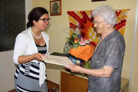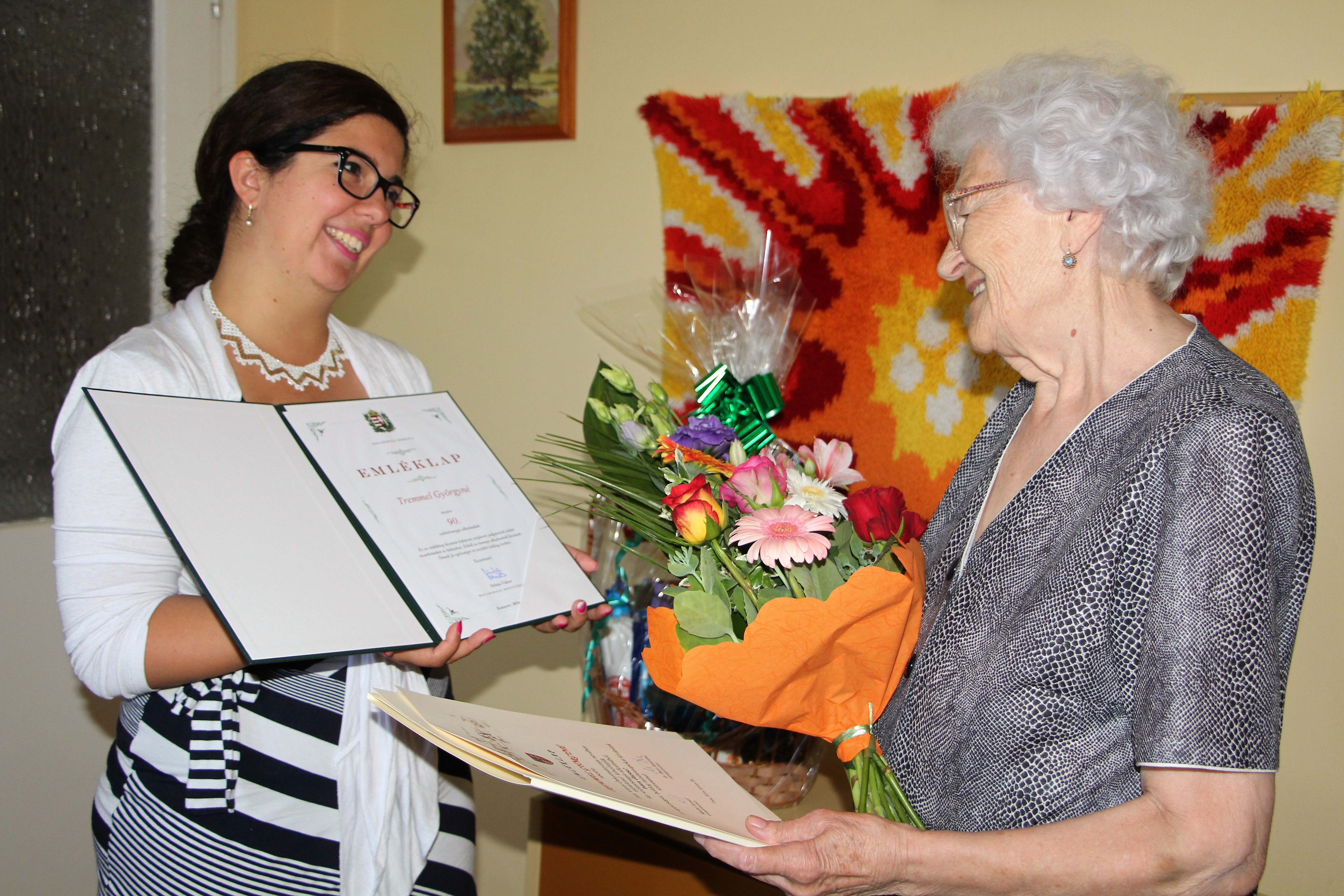 A 90. születésnapját ünneplő Tremmel Györgynét köszöntötte dr. Beró Henrietta alpolgármester.