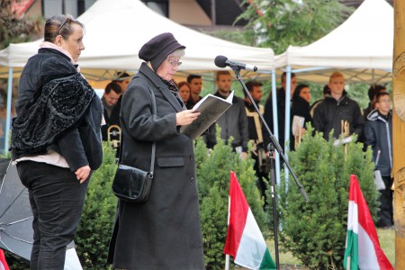 „Minden nap egy kicsit meg kell halnunk. Aki úgy hajtja álomra a fejét, hogy egy kicsit sem tudott aznap meghalni, annak a napja kárba veszett. Nem volt semmi, amiért erőfeszítést tett, nem harcolt meg semmiért, nem viselt el fájdalmat, s nem ajándékozott oda semmit, amit örökké magával vihet majd” – kezdte ünnepi beszédét Michl József, Tata polgármestere, aki három vértanú utolsó szavaiból idézett gondolatokat. A polgármester úgy fogalmazott: - ezek az emberek, akik egész életüket a hazájuknak áldozták, mindennap egy kicsit meghaltak azért, hogy egyszer majd az egészért is képesek legyenek meghalni. Erőfeszítés, munka, lemondás és szeretet nélkül, semmi sem tud hosszú távon épülni. A gondtalan élet, a gazdagság, az örökös egészség csak ábránd, és óriási hazugság. Nekünk, ma élő emlékezőknek nem maradhat csupán a koszorúzás, életté kell váltanunk a vértanúk halálát – mondta Michl József hozzátéve, hogy ahogyan minden nemzeti ünnepünk, szomorú emléknapunk idézőjel, úgy október 6.-a is idéző-jel. Magunk elé idézve eleinket, a 13 aradi vértanút, magunk elé állítva őket, s tanulva tőlük, lehetünk csak jelek ma is.