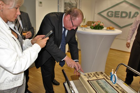 Markus Schaumburg, a Gedia Csoport ügyvezető igazgatója ünnepi beszédében elmondta:- a kezdetekkor ugyan több lehetőségük is volt a terjeszkedésre, de végül Tata mellett tették le a voksukat, többek között azért, mert városunkban megfelelő munkaerőt találtak. Elsőként egy összeszerelő-hegesztő üzemként indultak, de pár év múlva a bővítés mellett döntöttek, és létrejött a présüzem, valamint egyéb kiegészítő üzemcsarnokok, új irodahelyiségek. Az elmúlt 5 évben a Gedia Hungary megduplázta mind az eladási számait, mind dolgozóinak létszámát, jelenleg pedig már az 50 millió eurót is meghaladja az éves forgalmuk értéke. 2016 az az év – mondta Markus Schaumburg - amelyben a gyár felkészült a jövőre, hiszen számos kihívás áll előttünk, de készen állunk, és a következő hónapok során továbblépünk a növekedés érdekében.