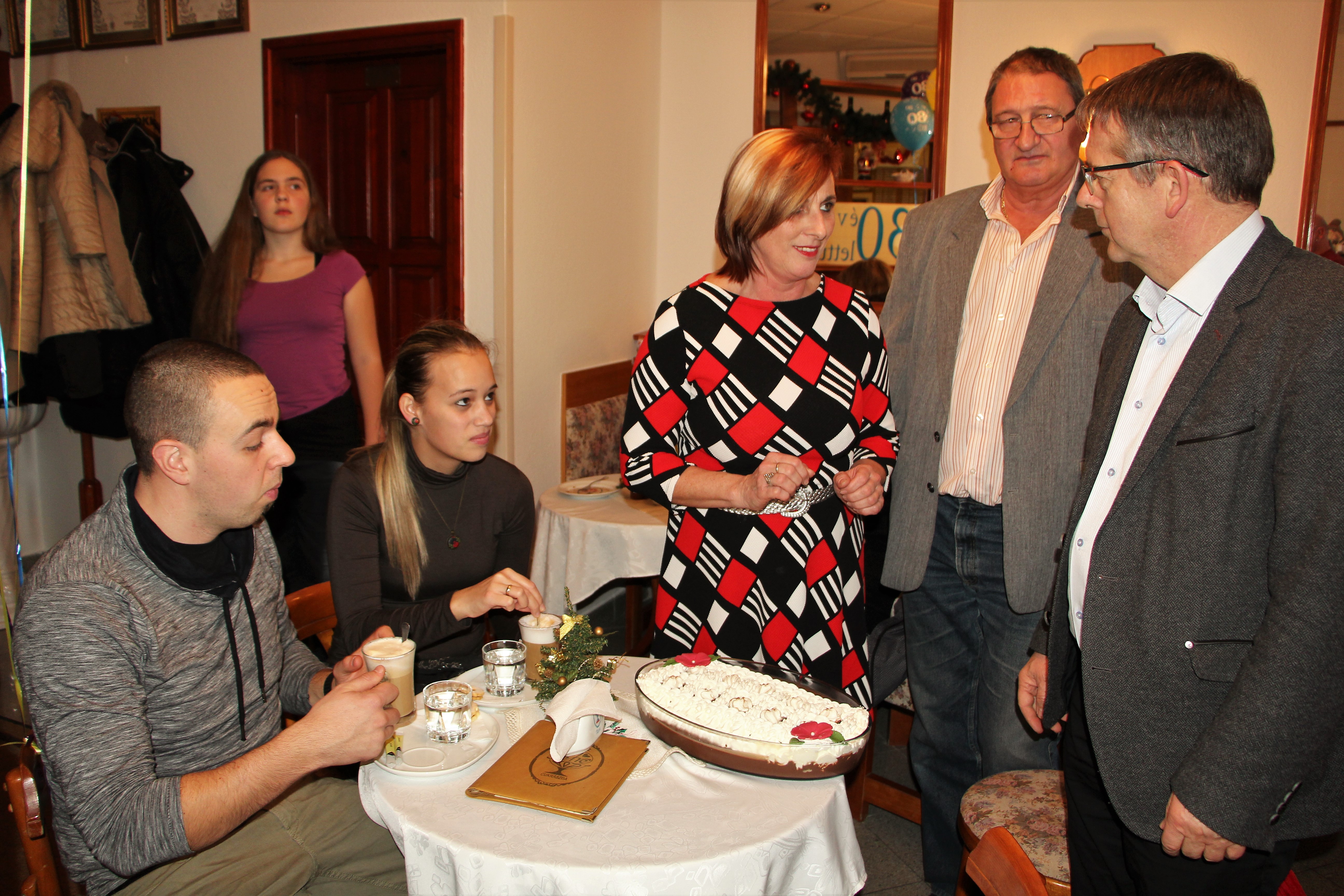 Michl József polgármester a helyszínen szívből gratulált a jubileumhoz, felidézve, hogy a város 2011-ben a Tata Városáért kitüntetés arany fokozatát adományozta a Petrezselyem családnak, amiért az általuk több évtizede megalapított cukrászdában folyó tevékenységükkel olyan magas szakmai színvonalú munkát végeznek, mellyel kivívták a legrangosabb országos gasztronómiai versenyek szervezésének jogát, s ezáltal öregbítették Tata Város hírnevét. A kitüntetéssel már akkor is azt akartuk elismerni – nyilatkozta a polgármester- , hogy a család kimagasló színvonalon dolgozik a cukrászat területén. Michl József hozzátette:- különösen példaértékű manapság, amikor a szakképzés területén komoly kihívások vannak, és egyre kevesebben akarnak szakmát tanulni az az elhivatottság, amivel nemcsak nap mint nap végzik a munkájukat, hanem szeretnék azt népszerűsíteni is.