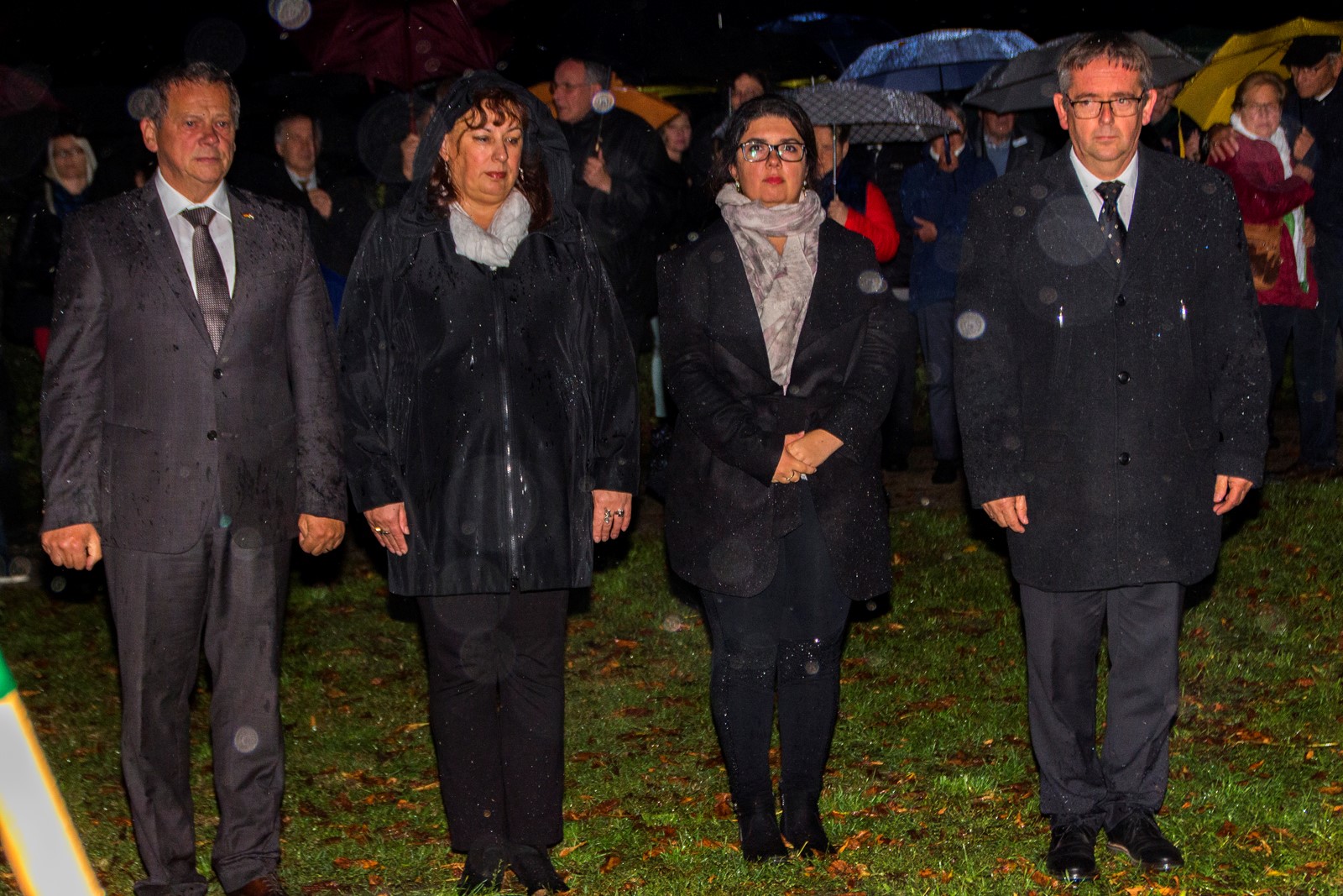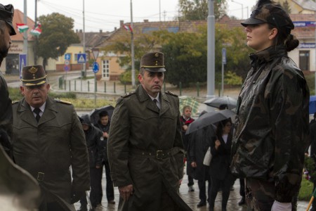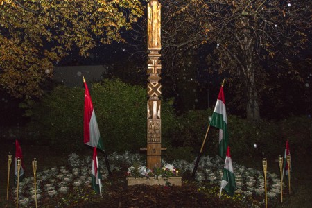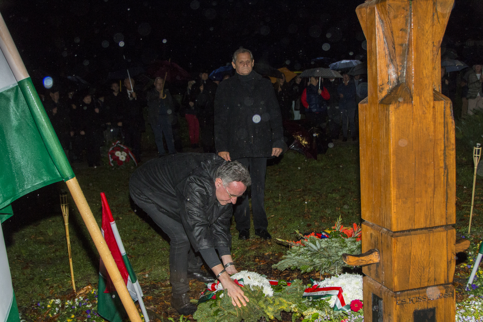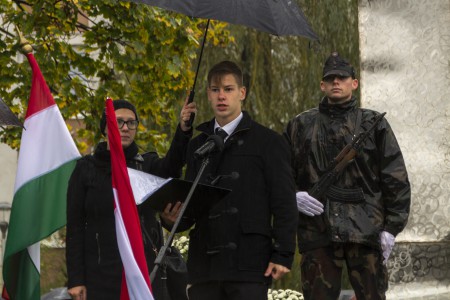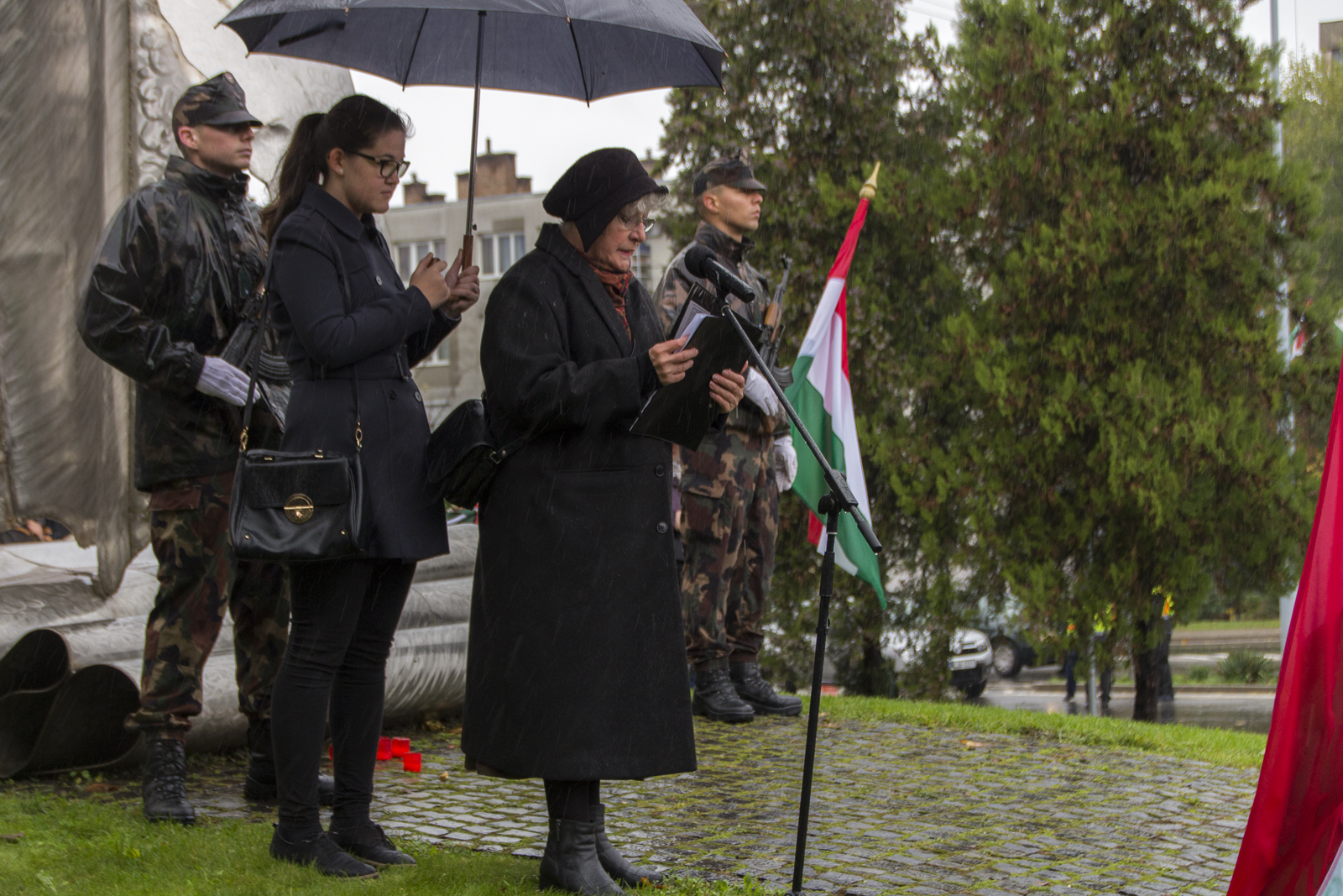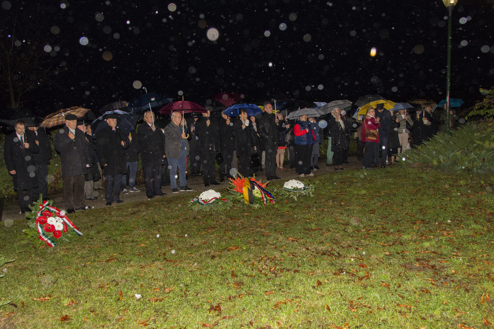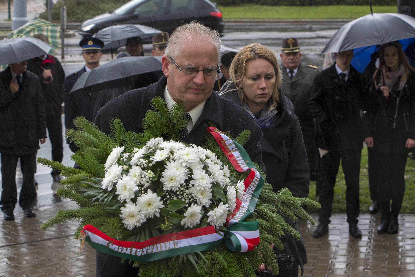 Október 23-án, hétfőn délelőtt az ünnepi megemlékezés és koszorúzás a körforgalomnál található 1956-os emlékműnél folytatódott. A helyszínen beszédet mondott Bencsik János. A Tatai-medence országgyűlési képviselője kiemelte:- a mi közös értékrendünk, a hitünk, a családunk, a nemzetünk, a nyelvünk, s a kultúránk, ezzel szemben pedig a másik oldalon áll egy olyan szövetség, amely mindezeket semmibe veszi, s a megtartóerővel bíró közösségeket leépíti annak érdekében, hogy a pénz és a gazdaság uralmát ki lehessen terjeszteni az egész világra. Most is erről van szó, egyik oldalon áll a gazdaság hatalma, mely azt mondja, hogy az ember van a gazdaságért, míg a nemzetállamok azt mondják, hogy a saját népükért van a gazdaság, és mindennek azért kell történnie, hogy saját kultúránkban, a szabadság örökségét megélve tudjunk élni. E két nagy eszme és életgyakorlat között kell választani: feloldódni a nagyvilág globális nyitott társadalmi rendszerében, vagy megmaradni magyarnak, szabadnak.