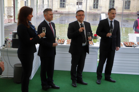 Michl József a helyszínen elmondta: - Egy olyan épület feltámadása előtt állunk, amit valaha az Esterházy család sok tatai és környékbeli ember munkája által építhetett meg, egy olyan gyönyörűséget teremtve, ami évszázadokon keresztül lehet a város ékessége. Nagy köszönet a magyar kormánynak, és Bencsik Jánosnak, aki sikeresen megvívta azt a csatát, melynek nyomán az épület végre megújulhat. A városvezető hozzátette: - Tavaly már százezer turista aludt tatai szálláshelyeken, a várat évente 60-80 ezren látogatják meg, tehát a városban szépen fejlődik a turizmus, s ennek folytatásában óriási lehetőséget jelent majd a felújított kastély. A polgármester külön köszönetet mondott a projektért a magyar kormánynak, Dr. Vitályos Eszternek, Bencsik Jánosnak, és mindazoknak, akik bármilyen módon szerepet vállaltak abban, hogy ez a fejlesztés megvalósulhat.