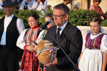Az esemény a Szent Kereszt Plébániatemplomban kezdődött, ahol szentmisét mutatott be Havassy Bálint plébános. Ezt követően a Kossuth téren folytatódott az ünnepi műsor, ökumenikus kenyéráldással.