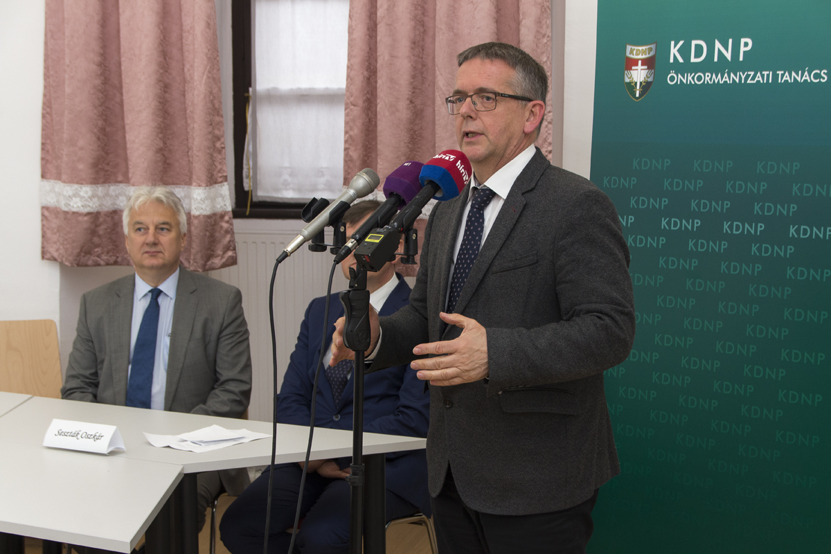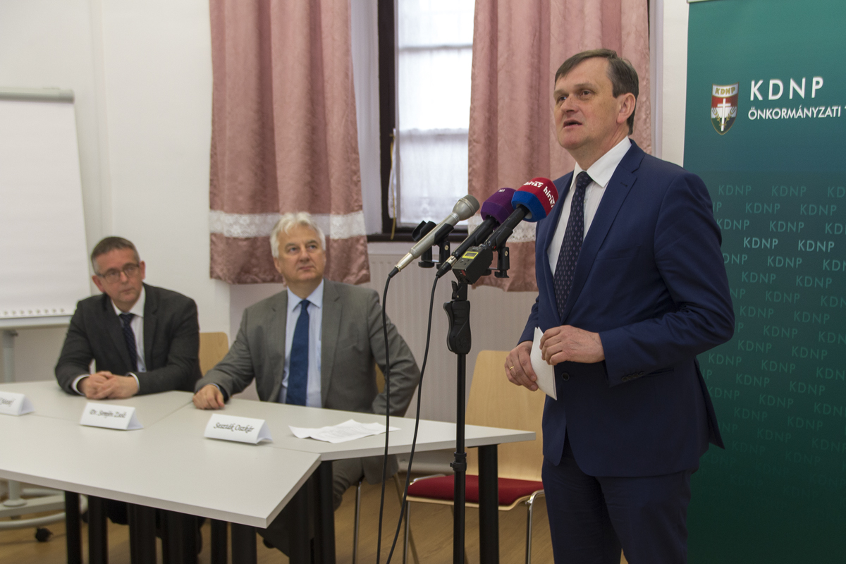 Április 12-én Tatán, a piarista rendház épületében rendezte soros ülését a Kereszténydemokrata Néppárt (KDNP) Önkormányzati Tanácsa. A helyszínen a konferenciához kapcsolódva Dr. Semjén Zsolt miniszterelnök-helyettes, a KDNP elnöke, Seszták Oszkár a KDNP Önkormányzati Tanács elnöke és Michl József Tata polgármestere tartott sajtótájékoztatót.