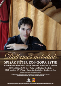 Október 9-én 17:00 órától a Piarista Rendház épületében, október 17-én 17:00 órától pedig az agostyáni Családi és Rendezvényházban hallhatják az érdeklődők Spisák Péter „Dallamos melódiák” című zongora estjét.