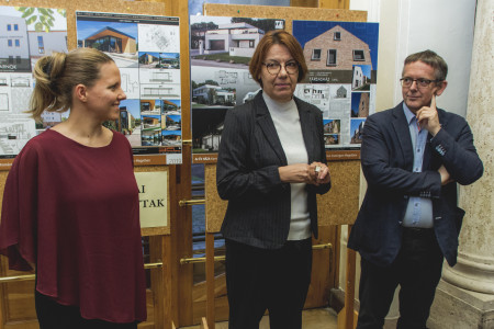 „Az Év Háza Komárom-Esztergom Megyében 2019” kiállítást a Városháza előterében nyitotta meg Michl József polgármester és Markos Anikó, a Komárom-Esztergom Megyei Építész Kamara elnöke. Ezt követően a díszteremben Kamarás Dorottya Tata Város főépítésze valamint Markos Anikó vezetésével szakmai beszélgetéssel folytatódott a program.