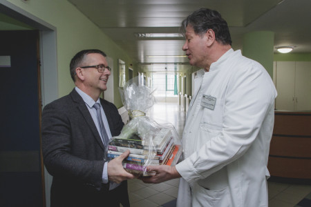 A helyszínen megrendezett sajtótájékoztatón Michl József, Tata polgármestere egy könyvcsomaggal ajándékozta meg a szülészeti osztályt, a könyveket a kismamák, édesanyák forgathatják majd a kórházban eltöltött időben.