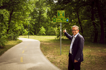 A 2013 decemberében átadott kerékpárút az érintett három település (Tatabánya, Vértesszőlős és Tata) összefogásával épült meg, a hossza 6,5 km. Létesítésének átfogó célja a régió fejlődésének elősegítése volt, hosszú távú célja pedig a települések közötti gépjármű-forgalom csökkentésével a környezet védelme, és a biztonságos kerékpáros közlekedés biztosítása. Az Által-ér völgyi kerékpárút az elmúlt években sikeresen bizonyított, hiszen átadása óta számos fejlesztés kapcsolódik hozzá, sokan napi közlekedési útvonalként használják, s közkedvelt lett a kerékpárosok és akár a gyalogos turisták körében is. Michl József, Tata polgármestere a pályázattal kapcsolatban úgy nyilatkozott: - Nagy öröm ez az elismerés és köszönet a sok szavazatért, amely azt mutatja, hogy sokan használják és szeretik ezt a kerékpárutat. A megyében is kiemelkedő a látogatottsága, de az ország számos pontjáról is eljönnek ide, hogy végig kerekezzenek ezen a szép útvonalon. A városvezető hozzátette: - Ennek a kerékpárútnak a megépítése megalapozta a további úthálózat fejlesztését, hiszen azóta folytatásként elkészült a dunaalmási és a majki kerékpárút, s elkezdődött a Tata-Agostyán közti kerékpárút szakasz építése is, így ez az egy út egy hálózatot hozott létre Tatán és környékén. Michl József hozzátette: - köszönet az ötletadóknak, Horváthy Lórántnak a kerékpárút-építés kezdeményezőjének, és mindenkinek, aki annak idején részt vett az út létrehozásában.