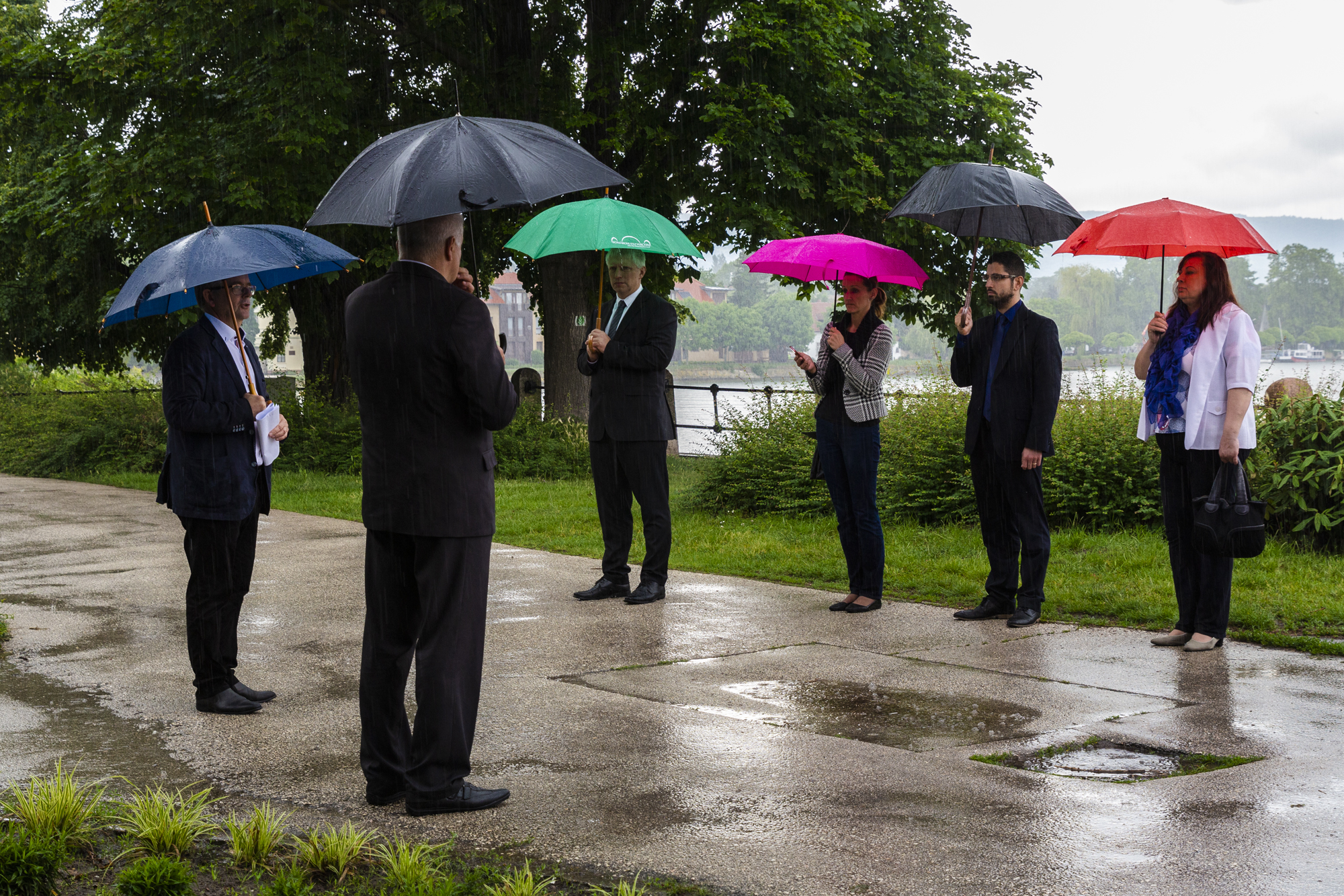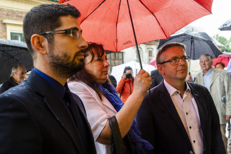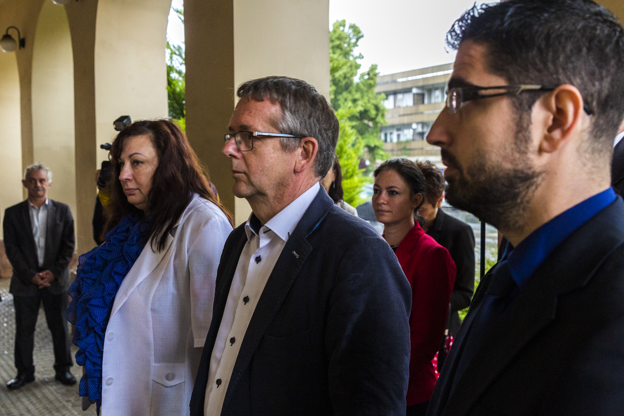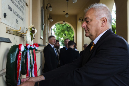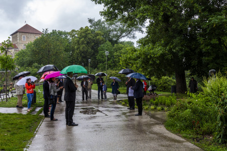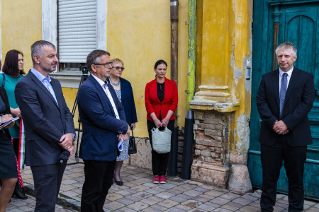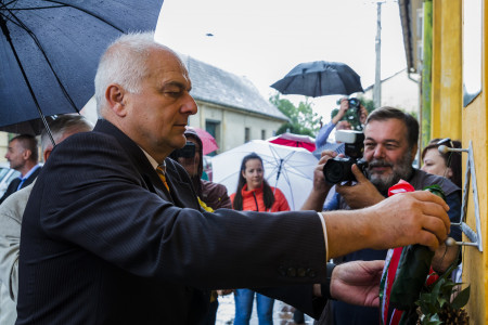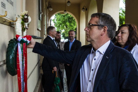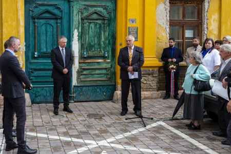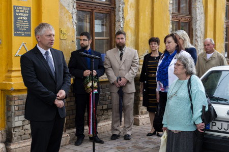 Az emlékező séta utolsó állomása a Tatai Járási Hivatal épületén elhelyezett emléktábla volt, a helyszínen Ströcker Zoltán a Járási Hivatal vezetője osztotta meg gondolatait a résztvevőkkel az emlékezés kapcsán.