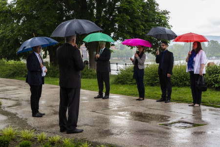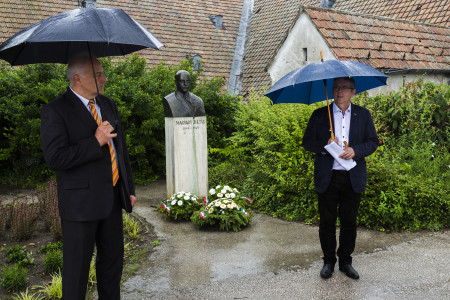 A megemlékezés Magyary Zoltán szülőházánál, a Bercsényi utcán kezdődött, ahol Dr. Kancz Csaba kormánymegbízott méltatta Magyary Zoltán közigazgatási munkásságát, ezt követően a séta az Öreg-tó partján álló Magyary szobornál folytatódott. A tóparton Michl József, Tata polgármestere köszönetet mondott a népfőiskolának az egész évben folyamatosan zajló programjaiért, valamint azért, hogy a konferenciákkal minden évben külön is ráirányítják a figyelmet a közigazgatás tudós munkásságára, város és járásszervező tevékenységére. Michl József kiemelte: - Magyary gondolkodásmódjából az egyik legfontosabb tanulnivalónk az, hogy miközben tesszük a dolgunkat, végezzük a mindennapi feladatainkat, nem felejtjük el, hogy az otthonunk, a saját közvetlen környezetünk és az a település, amelyen élünk, tőlünk tud szebb és jobb lenni, ezért nekünk magunknak is tennünk kell érte a saját eszközeinkkel, lehetőségeinkkel.