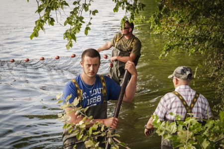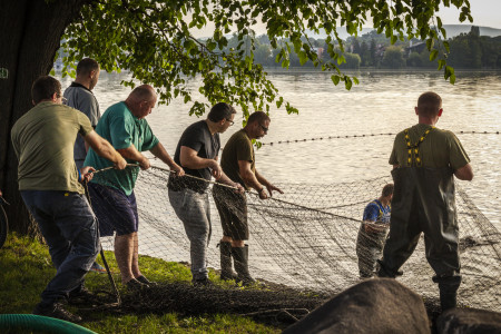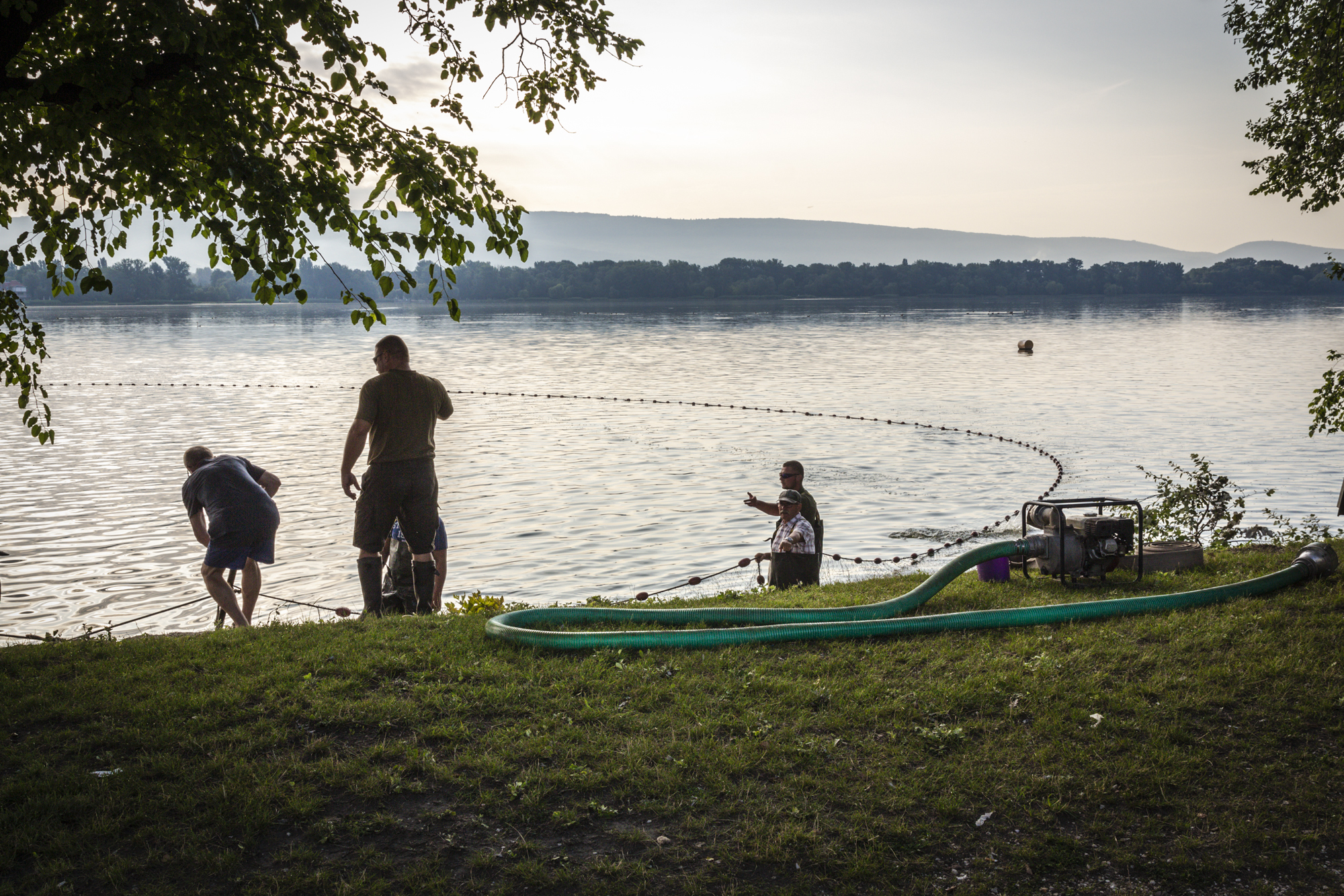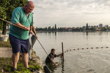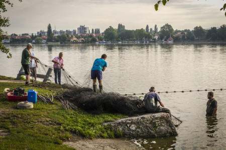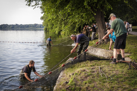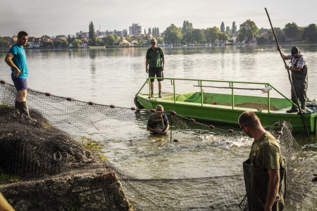 Július 30-án reggel próbahalászatot végzett a Tatai Öreg-tó Halászati Kft. az Öreg-tó partján, ahol ellenőrizték a halállományt és előkészültek a hétvégi horgászversenyre is.