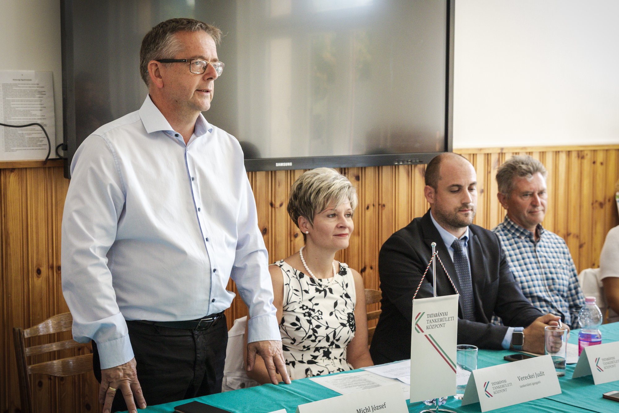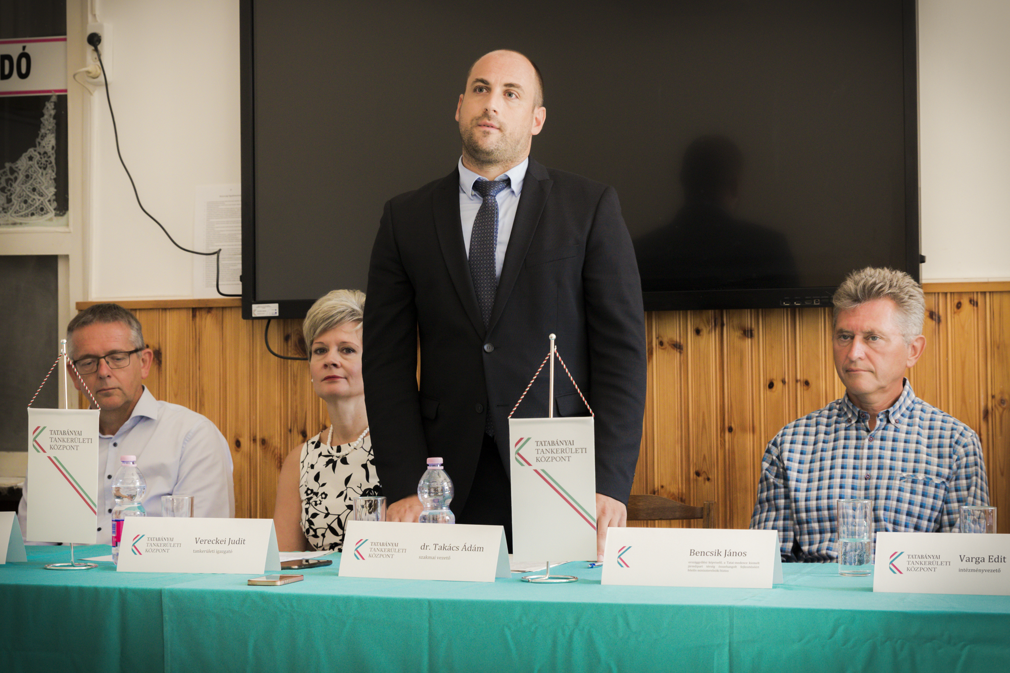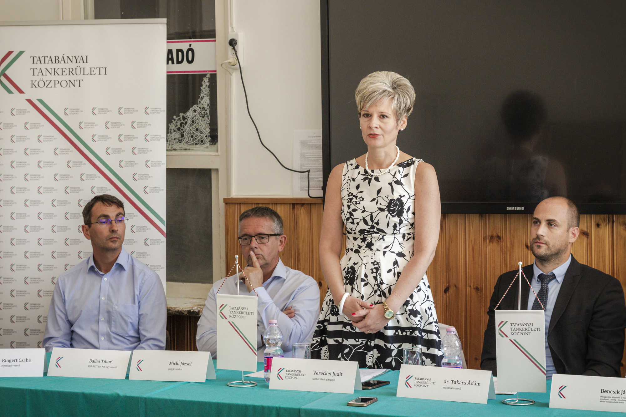 Dr. Takács Ádám a Tatabányai Tankerületi Központ szakmai vezetője elmondta, hogy 2017-ben jelent meg az a pályázati felhívás, mely lehetőséget adott a tankerület intézményeinek infrastrukturális fejlesztésére. Az elnyert pályázat három iskola, egy oroszlányi, egy nagyigmándi és a tatai Vaszary János Általános Iskola korszerűsítését teszi lehetővé.