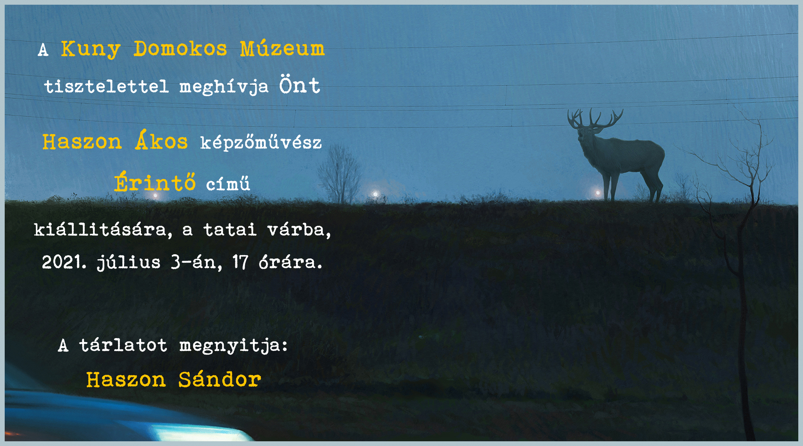 Haszon Ákos képzőművész tárlatának megnyitója 2021. július 3-án, szombaton 17:00 órakor kezdődik. Az "Érintő" című kiállítás keretében a művész – a vártorony kiállítótérben – az elmúlt 20 év alkotásait tárja a látogatók elé. A kiállítást Haszon Sándor tervezőgrafikus nyitja meg, a tárlat augusztus 8-ig látogatható.