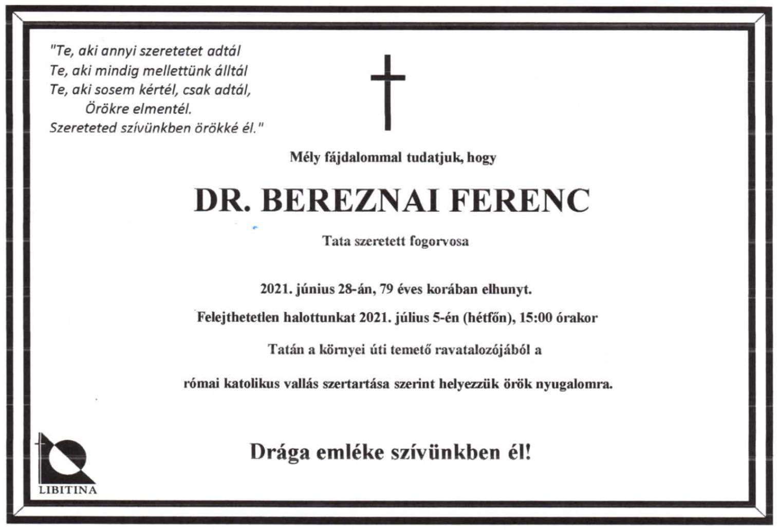 Elhunyt dr. Bereznai Ferenc, városunk szeretett fogorvosa.