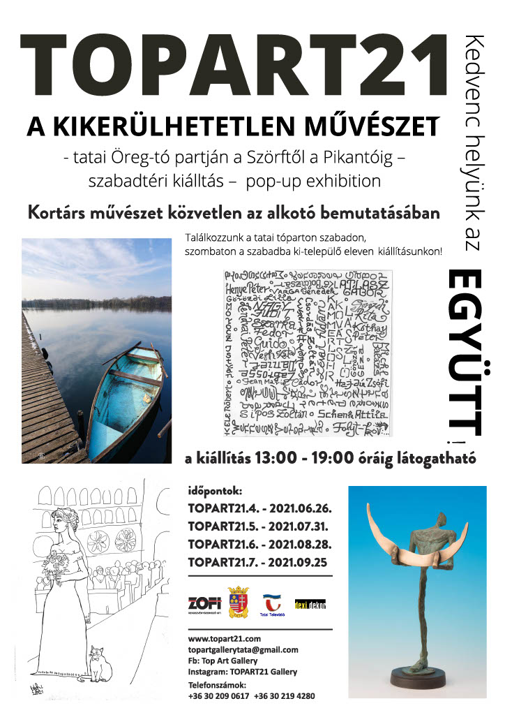 Szabadtéri kiállítást szerveznek kísérleti jelleggel Tatán immár 5. alkalommal júliusban. A TOPART21. 5. esemény rendhagyó módon a Neszmélyi Borünnep részeként debütál. Az esemény időpontja: 2021. 07. 31. 16:00-21:00, helyszín: Tata, Esterházy-kastély belső kertje.