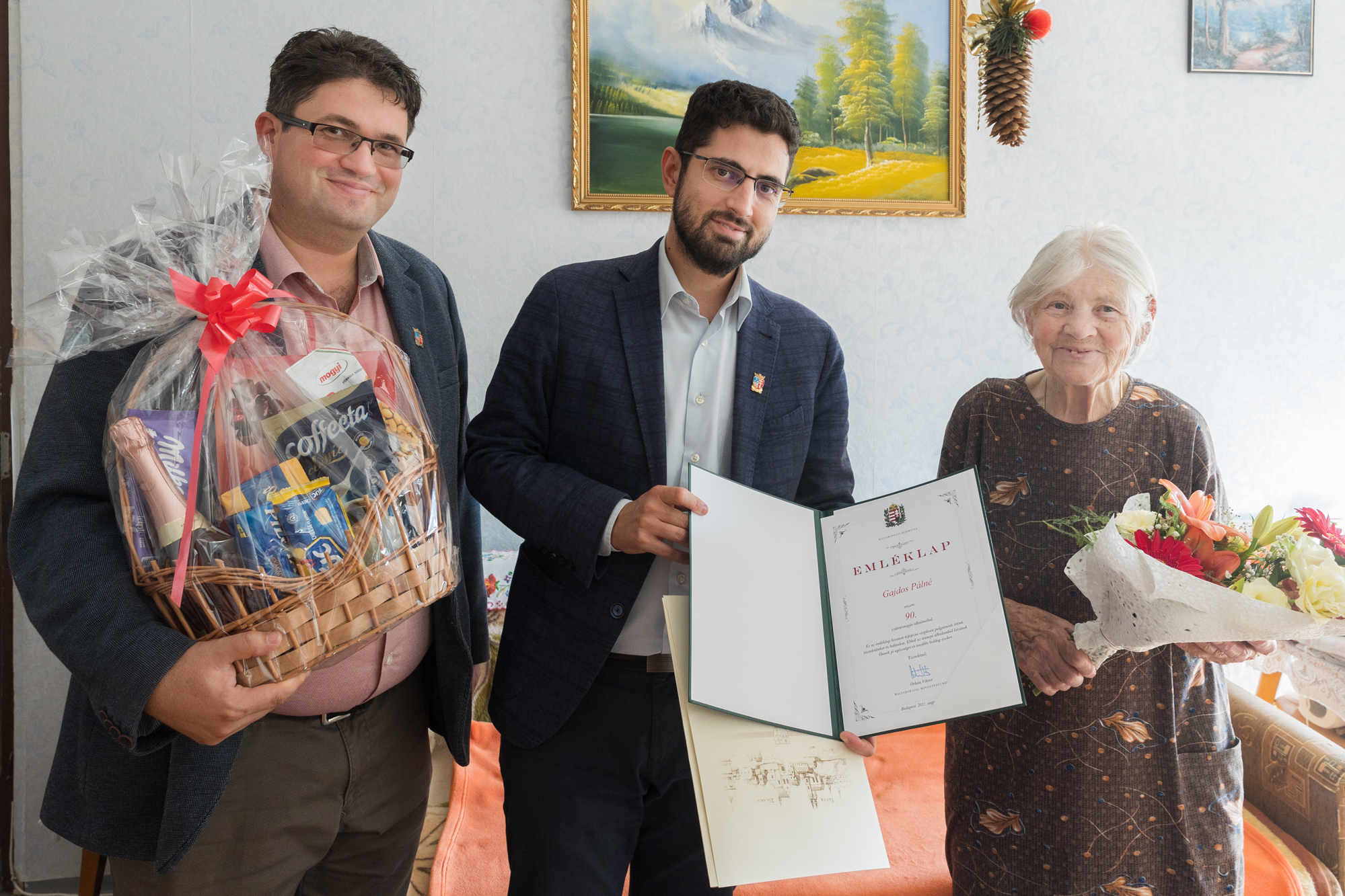 90. születésnapja alkalmából otthonában köszöntötte Gajdos Pálnét Rigó Balázs alpolgármester valamint a körzet önkormányzati képviselője, Boglári Zoltán szeptember 6-án.