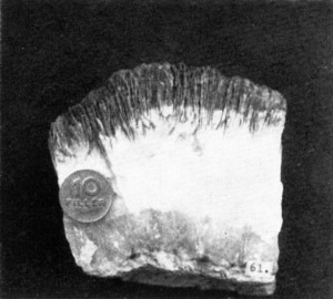 A Megalodus-barlang jellegzetes sugaras szerkezetű kalcitkérge (Almády Z. felvétele)