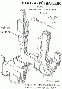 3. ábra. A tarai Bartha-kútbarlang izometrikus ábrázolása. Felmérte a Megalodus Barlangkutató Csoport. Szerkesztette Almády Zoltán 1987-ben