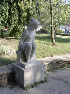 A teret, mai parkosított formájában, 1964-ben alakították ki, ekkor helyezték el Brém Ferenc süttői mészkőből készült Vízbe néző lány című szobrát, melyet szökőkút vesz körül. A tér közepén háromszög alakú talapzatból kiindulva 17 méter magas obeliszk tetején levő felhőgomolyagos földgömbön, jobb kezét szívére tartva áll Mária Immaculata (Szeplőtlen Boldogasszony), Schweiger Antal 1780 táján készített szobra.