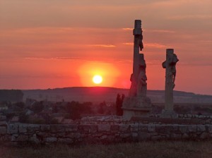 A kápolna közelében levő kör alakú építmény közepén álló hatalmas, dinamikus kálváriacsoport (Golgota), Schweiger Antal 1770 körüli alkotása. Jézus Krisztus keresztje tövében Mária Magdolnát, a két oldalán Szűz Mária és Szent János apostol alakját látjuk. A fatörzs jellegű keresztre feszítve a latrok alakja torzított testtartásban jelenik meg.