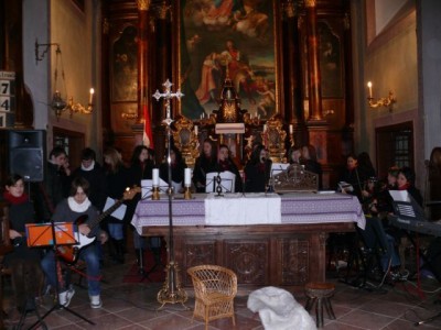 Gergely István esperes és az ő „Árvácskái” teremtettek emelkedett hangulatot a kapucinus templom falai között a hétvégén. A csíksomlyóról érkezett fiatalok karácsonyi zenés műsorral kedveskedtek a tataiaknak.