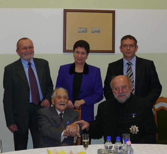 Élénk tekintetű, friss szellemiségű idős urat fogtak körbe a tatai városházán születése napja alkalmából, január első hetében. Az ünnepélyes hangulatú és öltözékű társaság tagjai, a Történelmi Vitézi Rend képviselői az egykori magyar királyi főhadnagyot, s több generáció tanárát ünnepelték, aki persze maga is vitézi címmel büszkélkedhet! Századik születésnapján Michl József polgármester, Dinga László helyhatósági képviselő, szintén vitéz, valamint Hunyadi László főkapitány tisztelgett a tisztes kort megért tatai polgár előtt. Lánya, Takács Gyuláné Kovács Mária közös otthonban él az édesapával, akinek szellemét nem törte meg a nagy idő. Ma is érdeklődik a világ, a város dolgai iránt, s ellátja magát. Szívesen olvas, humorizál, beszélget.