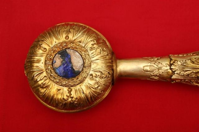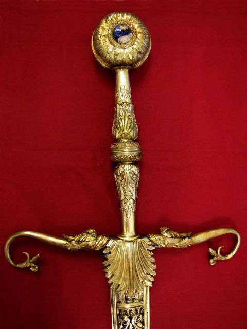 A díszkard a hitetetlenek elleni harc jelvénye, a gyöngyökkel kivarrt, hermelinprémes karimájú lila színű bársonyföveg a keresztények védelmének szimbóluma volt. A kiállított műtárgyak: korabeli dokumentumok, használati tárgyak, valamint az érintő képernyős berendezések, és igényesen kialakított információs panelek segítségével a múzeum látogatói összetett élményben részesülnek: behatóan tanulmányozhatják a korszak történelmi eseményeit, átélhetik a kor hangulatát, vitruális sétát tehetnek a Jagello- kori várkastélyban, szimbólikusan’ lapozgathatják a Bakócz Graduale, a Budai Miniatúra műhely vagy éppen II. Ulászló kódex vaskos köteteit, miközben éppen abban a teremben sétálnak, ahol a jelentős politikai események zajlottak.