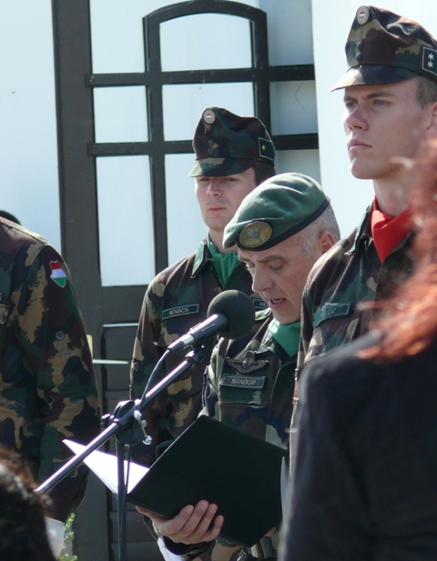 Tisztelt Gyászoló Közösség! Egy olyan tatai fiatalembert veszítettünk el, aki szinte az egész katonai pályafutását városunkban töltötte. Abban a helyőrségben, amely hosszú évtizedek óta ad otthont a honvédségnek. Így temetésen, egy halott katona, gyermek, férj, édesapa ravatalánál állva, minden ember legtermészetesebb, belső, titkon kimondott érzése és örök reménysége, hogy jusson el végre a világ oda, hogy egyetlen katonára se legyen többé szükség. Kolozsvári György hadnagy úr, köszönjük életed, Isten áldjon, nyugodjál békében!