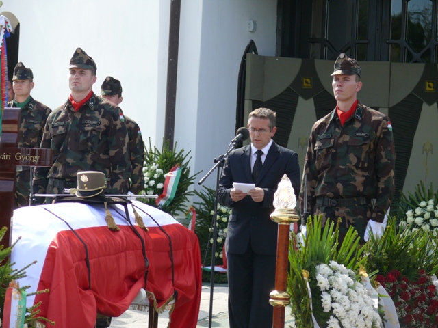 Kolozsvári György posztumusz hadnagy temetése, 2010. szept. 14. Tata, Michl József polgármester, országgyűlési képviselő beszéde