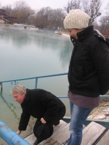 Mostanság csöndes a Fényes-fürdő, csak a szauna körül élénkül meg az élet délután négy után. Mögötte a katonai medence szolid párában úszik, a víz felszínén a mélyről felszökő buborékok rajzolnak mozgó köröket. Amikor kinn mínuszok röpködnek, a medence vize akkor is 23 fokos. Horváthy Lóránt alpolgármester bizonyítékul belemártja a kezét a langyos vízbe, s sorolja a Fényes fürdő kincseit.