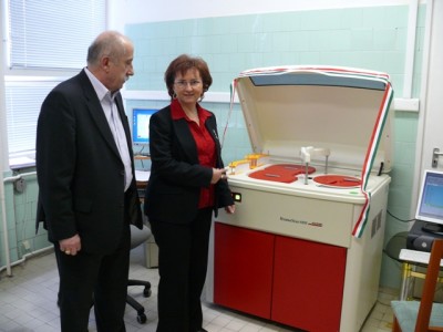 Dr. Laky Zoltán tájékoztatott arról, hogy a gép értéke tízmillió forint és olyan szerencsés konstrukcióban jutott hozzá a laboratórium, hogy külön finanszírozási költséggel nem járt a beszerzése. Mivel a műszer a vizsgálatokat gyorsabban végzi el, mint a régi, több mint húsz éves elődje, a betegek előbb jutnak majd az eredményekhez és a várólista is csökken.