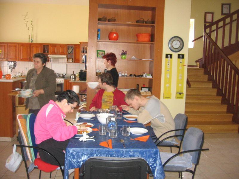 A tatai Szent Gergely Lakóotthonban önállóságra nevelik a fiatalokat, s számos olyan hétköznapi tevékenységre tanítják meg őket, amelyeket maguktól, nem, vagy nehezen sajátítanák el. A családias légkörben, kis létszámban élő fiatalok idejét tartalmasan töltik ki a segítőknek nevezett szakemberek. Képességeikhez mérten dolgoznak, zenei és képzőművészeti foglalkozásokon vesznek részt. Gyógylovaglás, kerékpározás, gyógytorna tartozik mindennapjaikhoz. Legfőbb cél, hogy védett munkahelyeken hasznos munkát legyenek képesek végezni e speciális fogyatékossággal élő emberek. A lakóotthonban gyakoriak a külföldi és hazai vendégek, az itt folyó kiváló szakmai munka példaként szolgál másoknak is.
